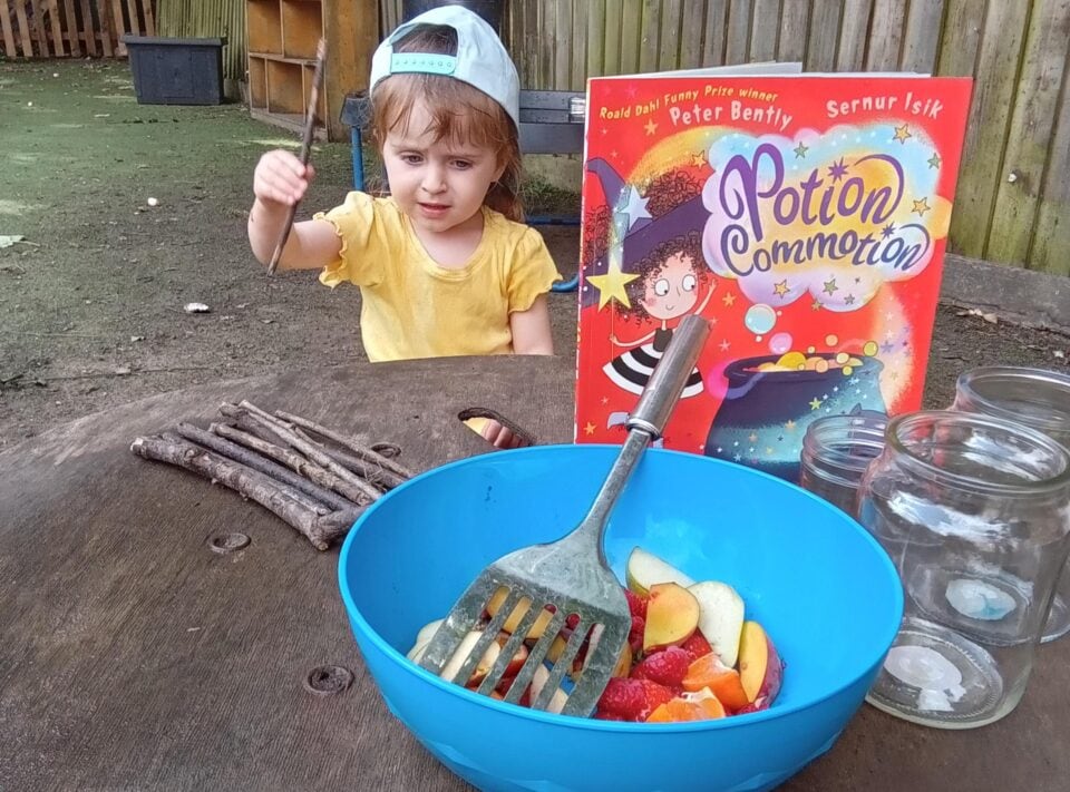 Inspired by this delightful story, parents and early years children can embark on their own magical adventure outdoors. This activity brings the book to life, sparking children’s imaginations as they use their senses to explore the world around them and concoct their very own magical brews.